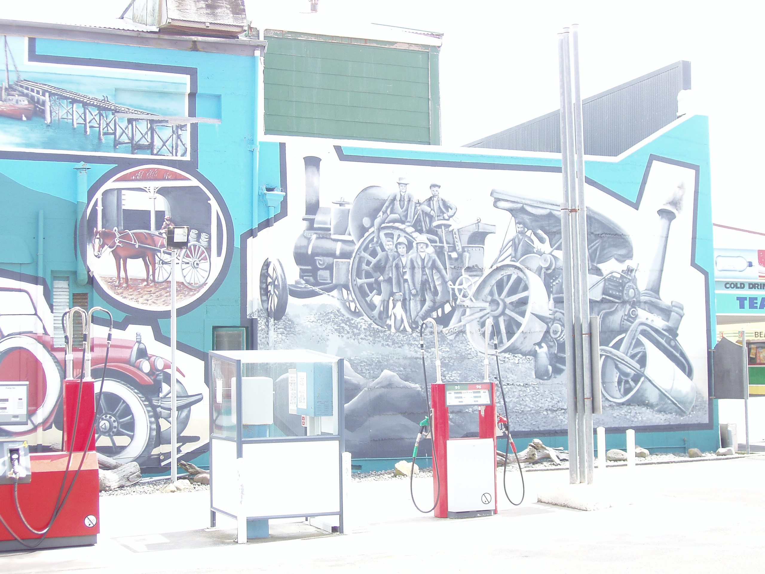 description:An art mural at the gas station.