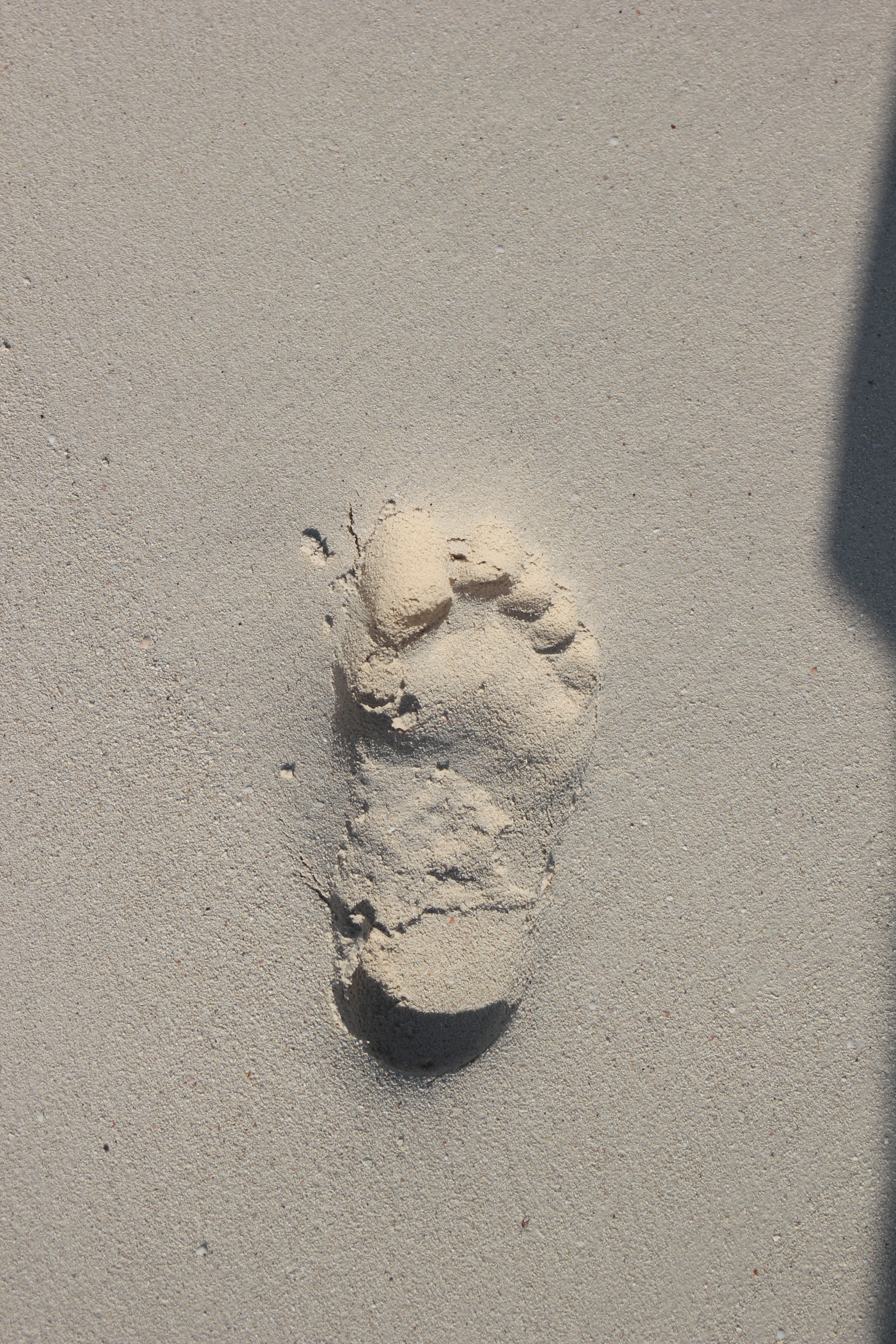 description:The foot print of a visitor on the sand.
